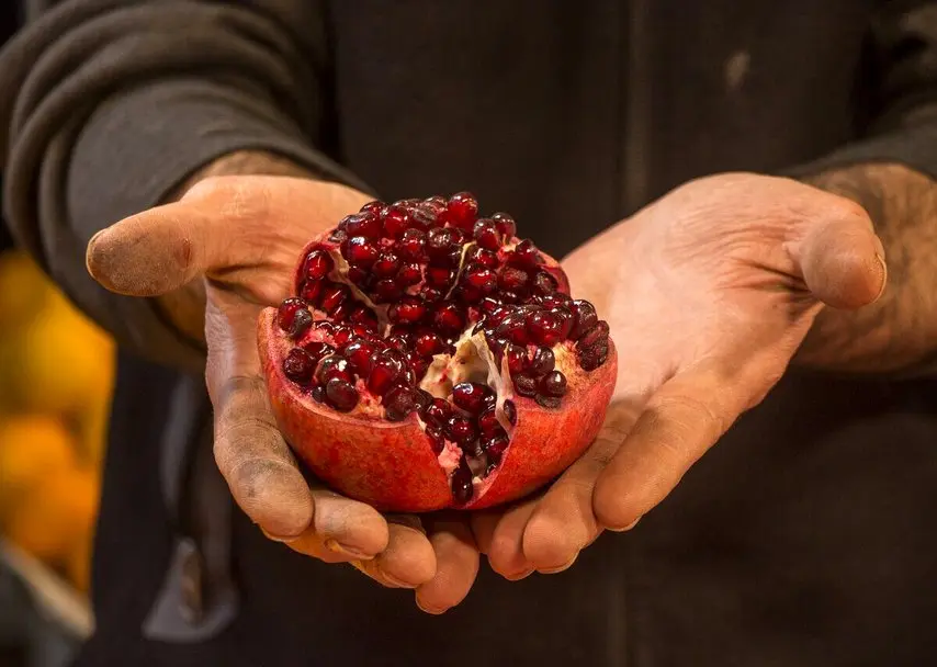 - حدود نصف لیوان دانههای انار تازه را کمی بکوبید تا آب آنها خارج شود.